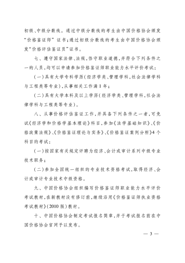 价格评估鉴证专业人员职业能力水平...