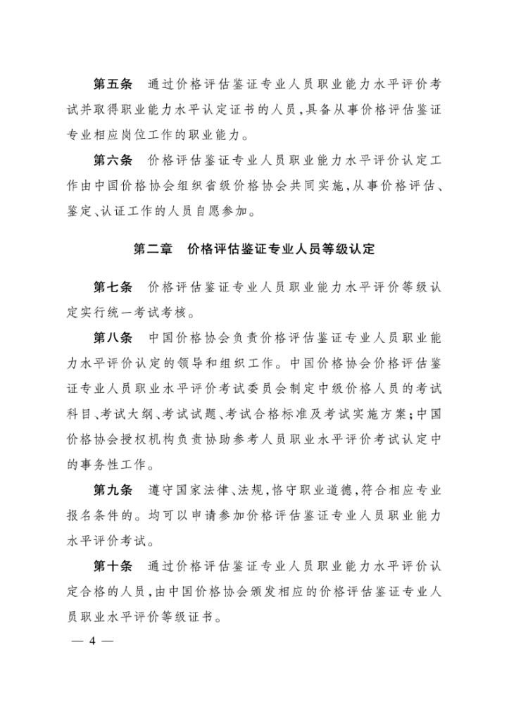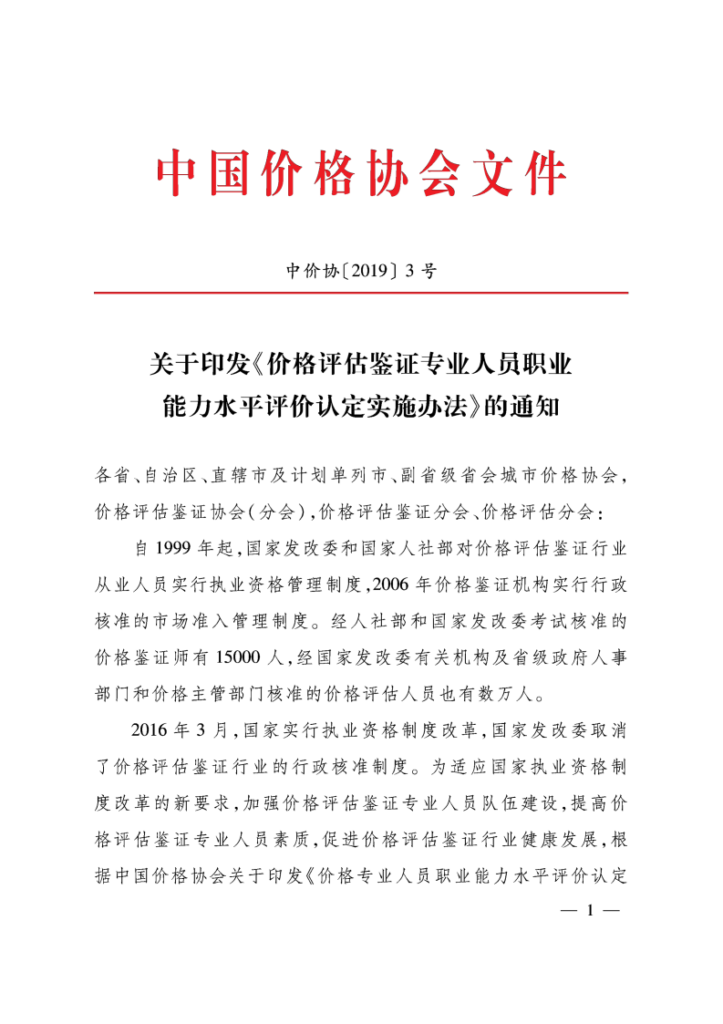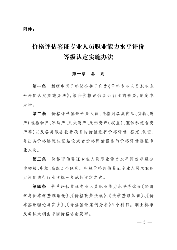 价格评估鉴证专业人员职业能力水平评价认定