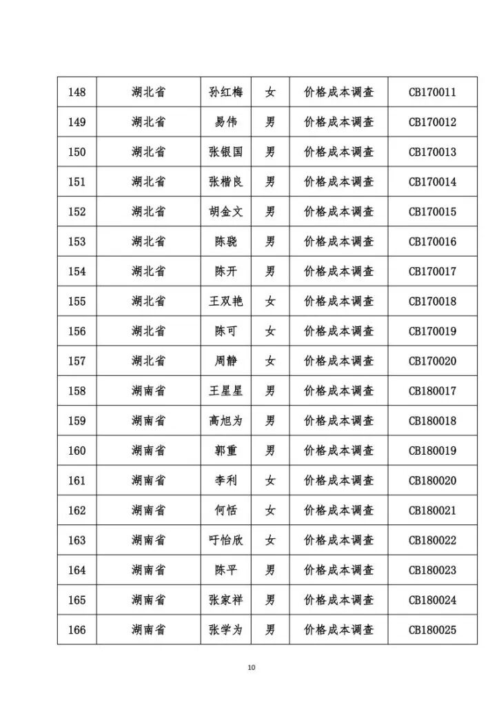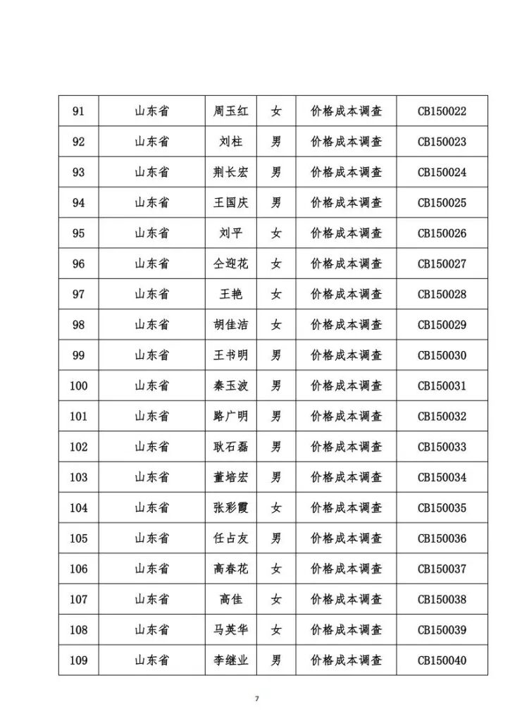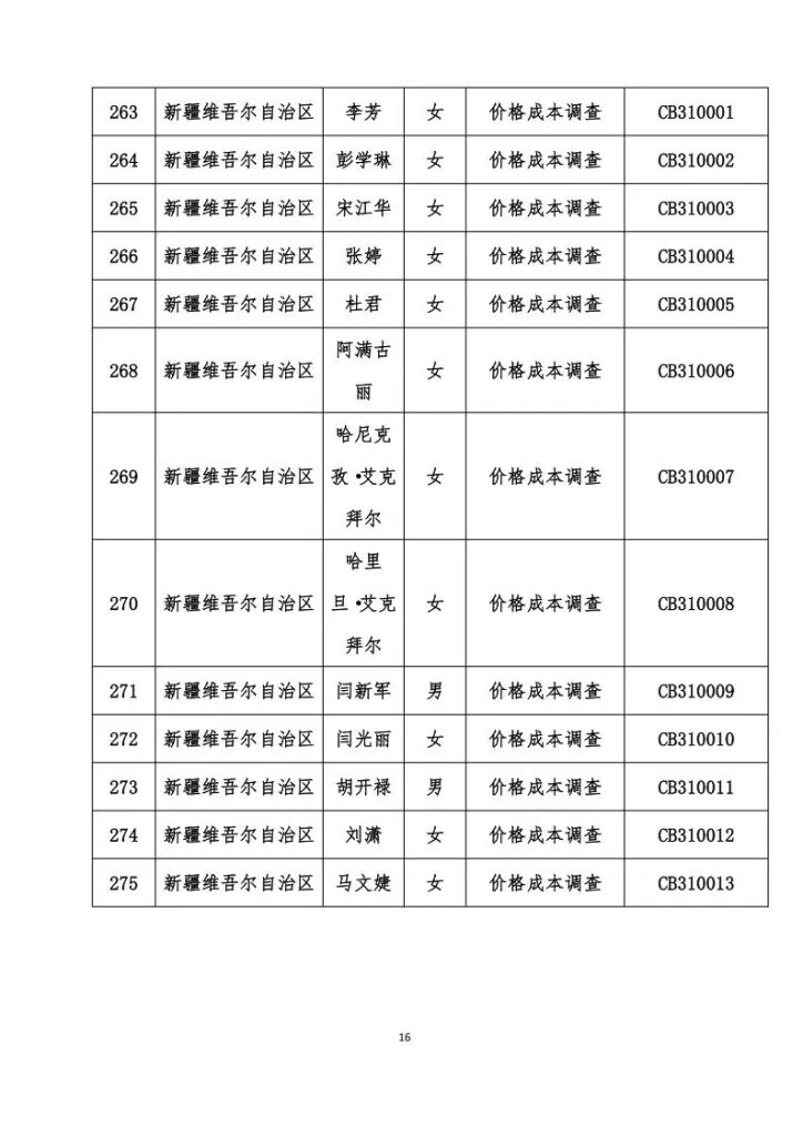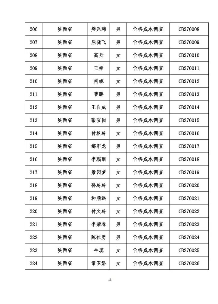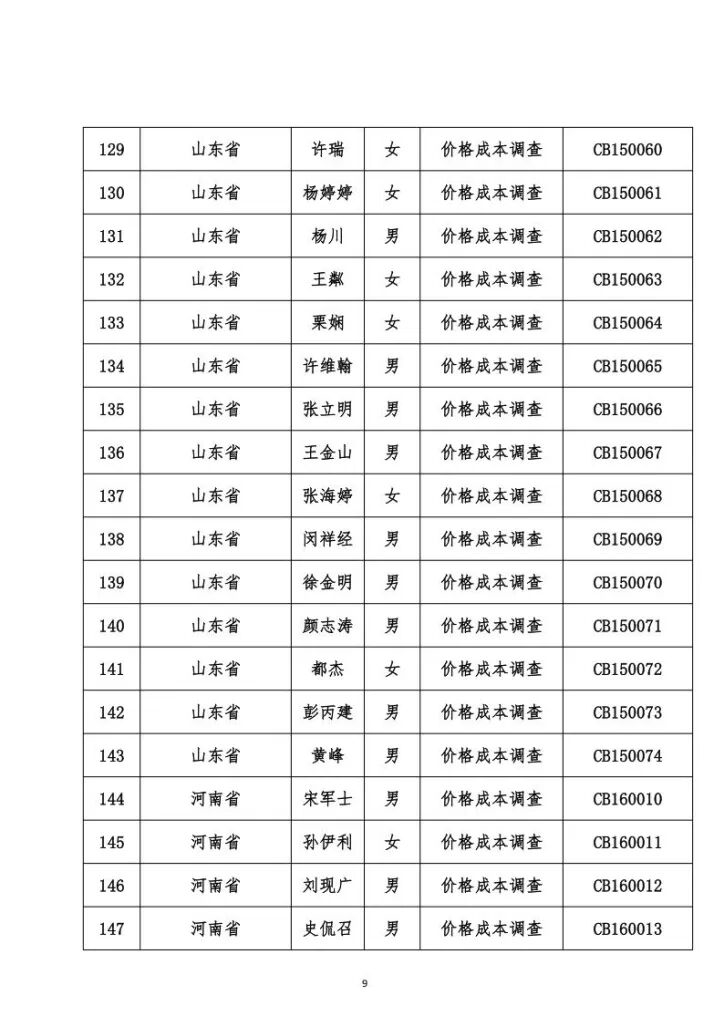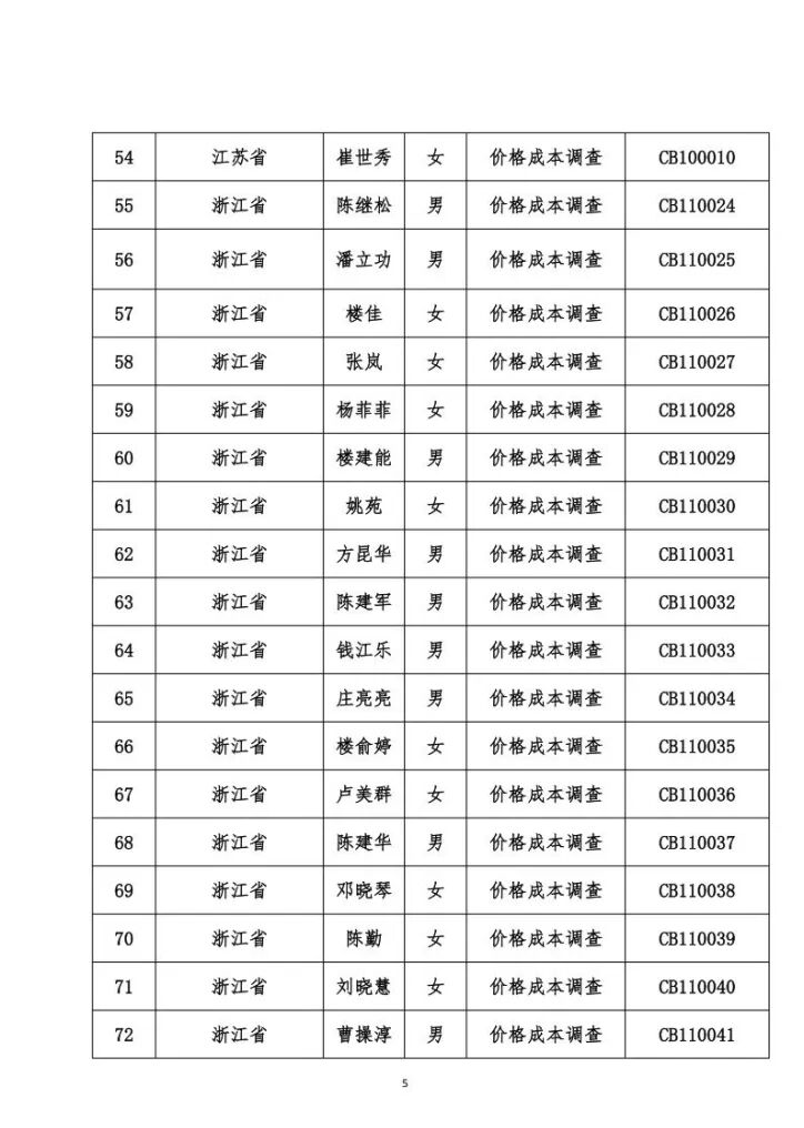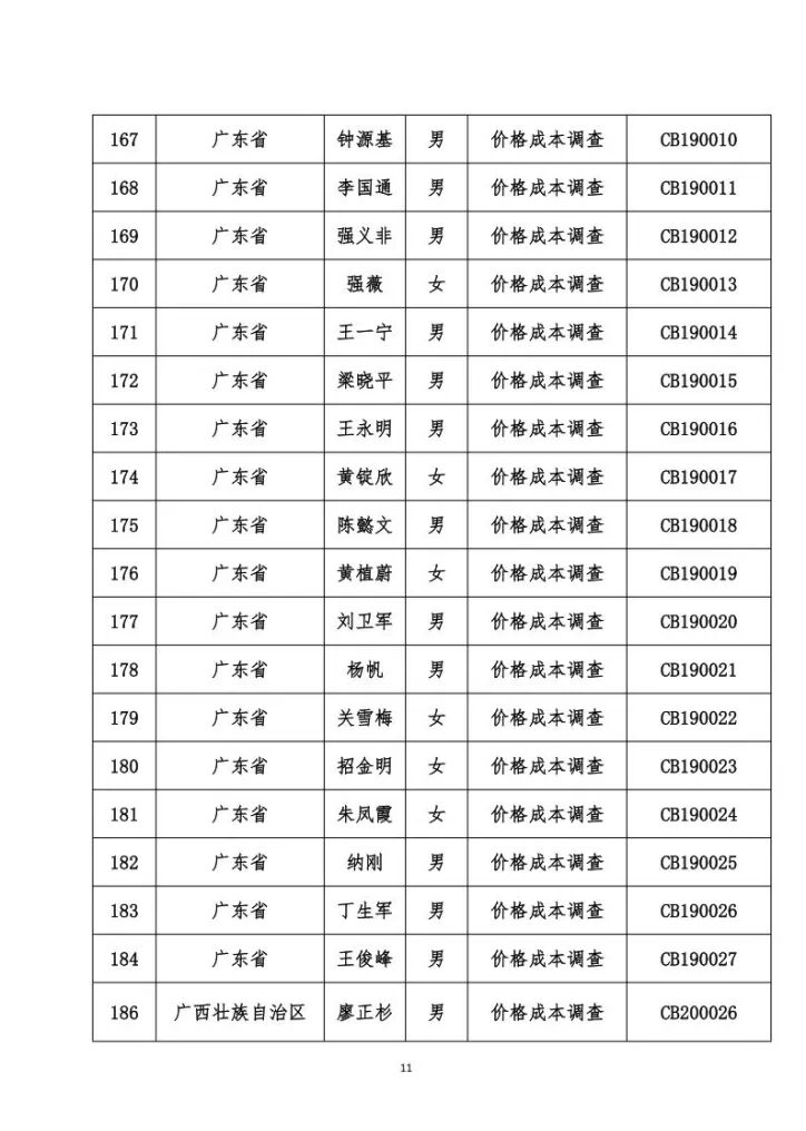 关于发布价格成本调查专业人员职业能力水平考试合格名单的公告