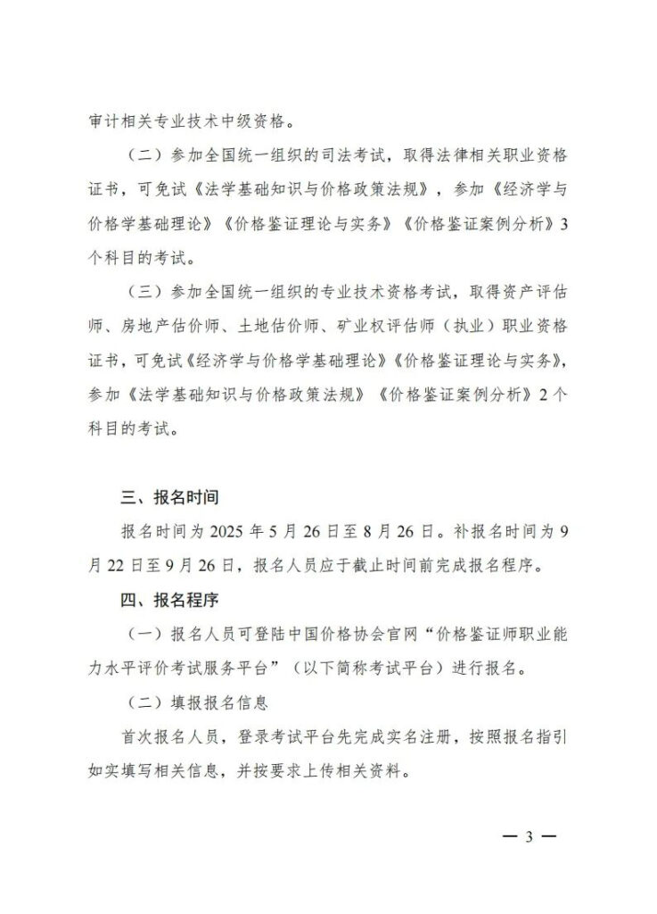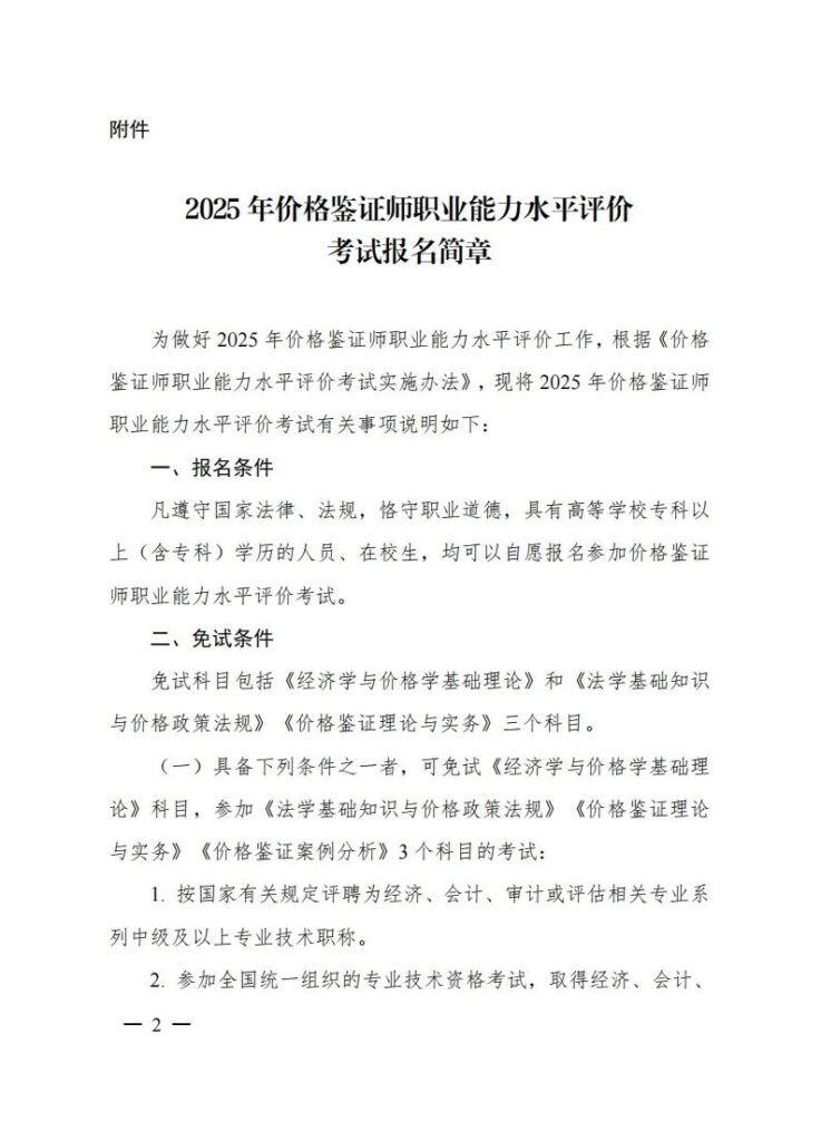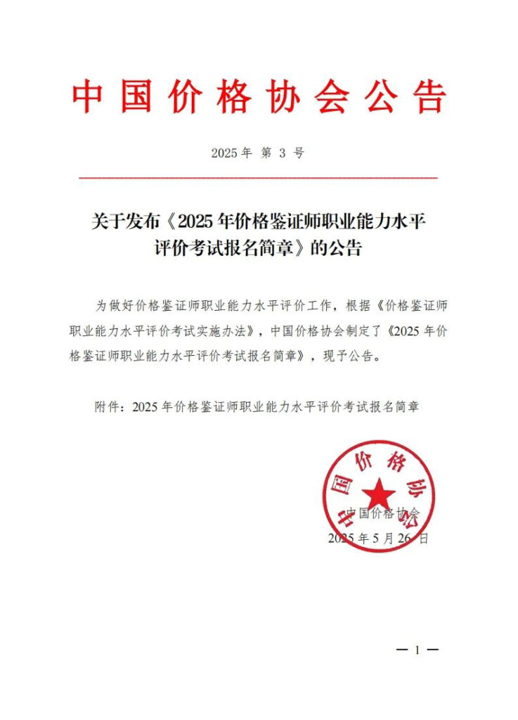 关于发布《2025 年价格鉴证师职业能力水平评价考试报名简章》的公告