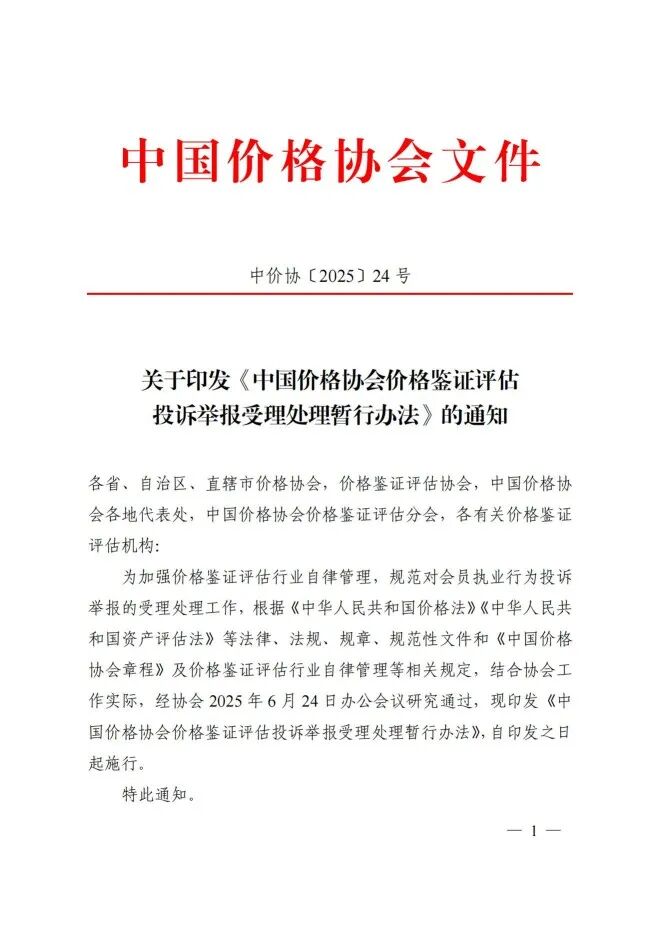 关于印发《中国价格协会价格鉴证评估投诉举报受理处理暂行办法》的通知