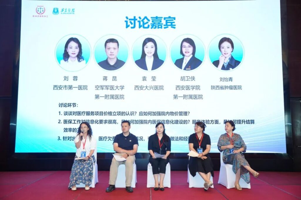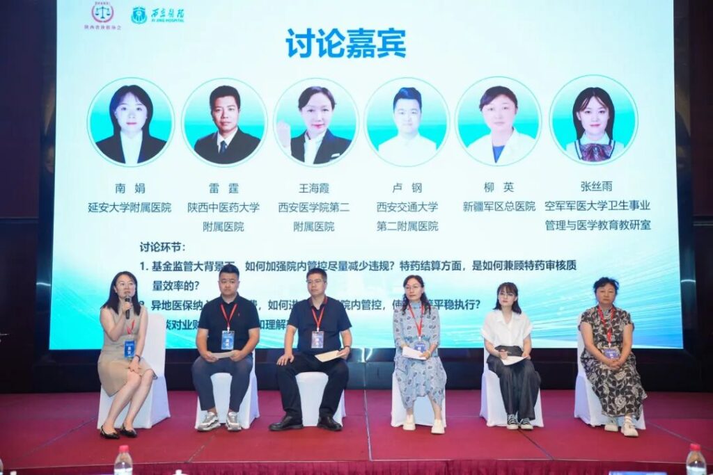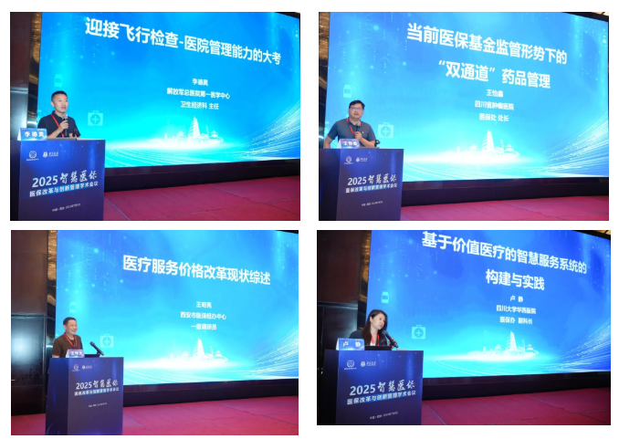 紧凑的安排,真知灼见在学术交流中精彩纷呈。解放军总医院李德昊“迎接飞行检查、医院管理能力的大考”,四川省肿瘤医院王怡鑫“当前医保基金监管形势下的‘双通道’药品管理”,西安医保服务中心王明亮“医疗服务价格改革现状综述”,四川大学华西医院卢静“基于价值医疗的智慧服务系统的构建与实践”,西安交大药学院方宇“三医协同背景下的药品供应保障探析”,北部战区总医院高轶“数据驱动下的医保管理”,江苏省人民医院丁海霞“国药双通道创新落地模式介绍”等,都给与会同仁耳目一新,提供了可供借鉴的经验和办法。空军军医二附院薛峰、西安市中心医院孙涛、西安市人民医院张敏、西安市国际医学中心时向群、西安交大一附院王小莉、空军九八六医院任静、空军军医大学三附院郑克清对应作了精彩点评和要点解读。