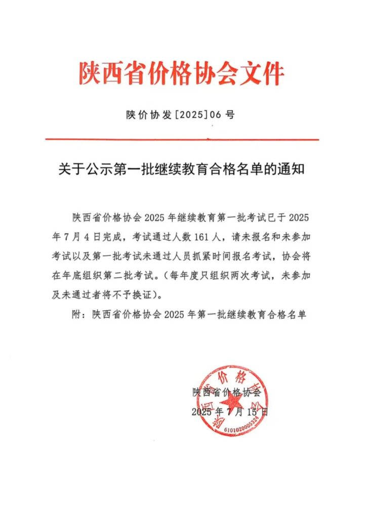 附件:陕西省价格协会2025年第一批继续教育合格名单