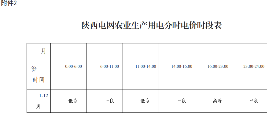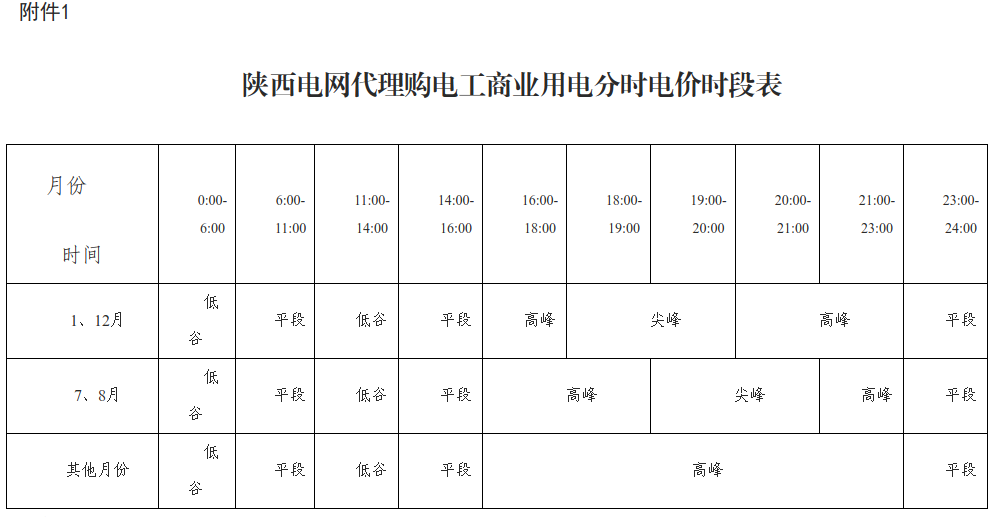 附件:1.陕西电网代理购电工商业用电分时电价时段表