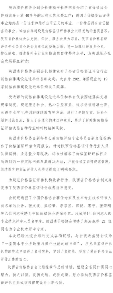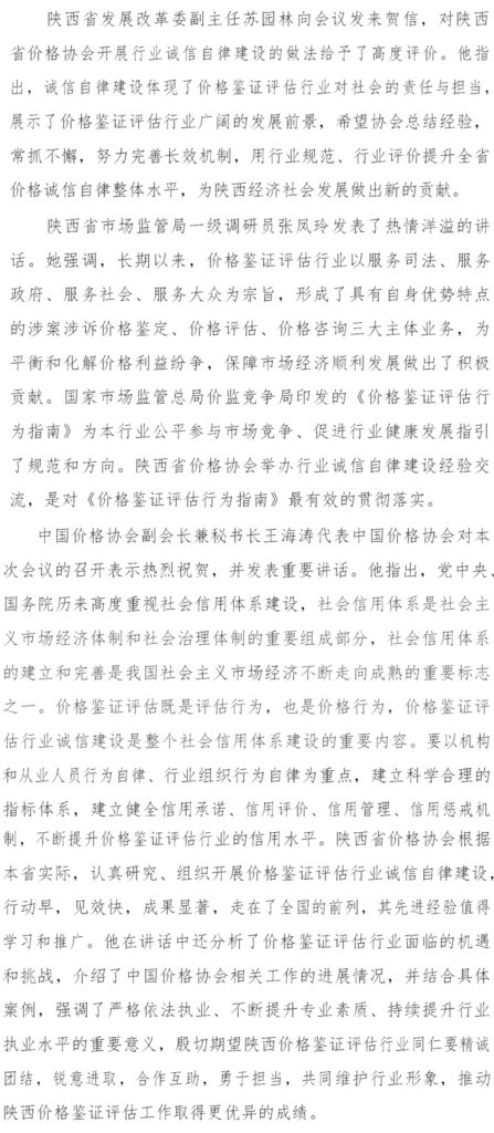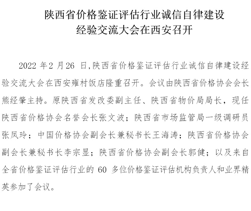 陕西省价格鉴证评估行业诚信自律建设 经验交流大会在西安召开