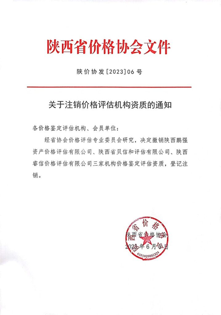 陕价协发[2023]06号 关于注销价格评估机构资质的通知