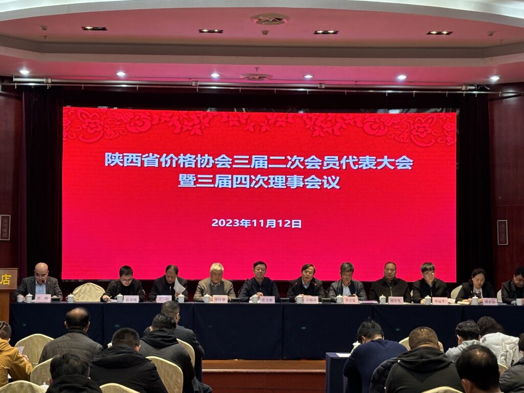 2023年11月12日,陕西省价格协会三届二次会员代表大会暨四次理事会在西安召开。中国价格协会副会长王海涛、省发改委原党组副书记、副主任张文波、原省发改委二级巡视员李运生、王锫等领导出席会议,来自各行业的会员代表约80人参加会议。会议由第三届理事会副秘书长徐鹏主持。中国价格协会副会长王海涛、省发改委原党组副书记、副主任张文波分别为会议致辞。新疆价格协会会长胡小萍,中国青旅集团耿箫亲临会议并发表贺辞。北京、上海、天津、江苏、福建、山西、厦门等省市价格协会发来贺信、贺函表示祝贺。还有安徽、河南等省市协会通过邮箱、微信表达贺意。