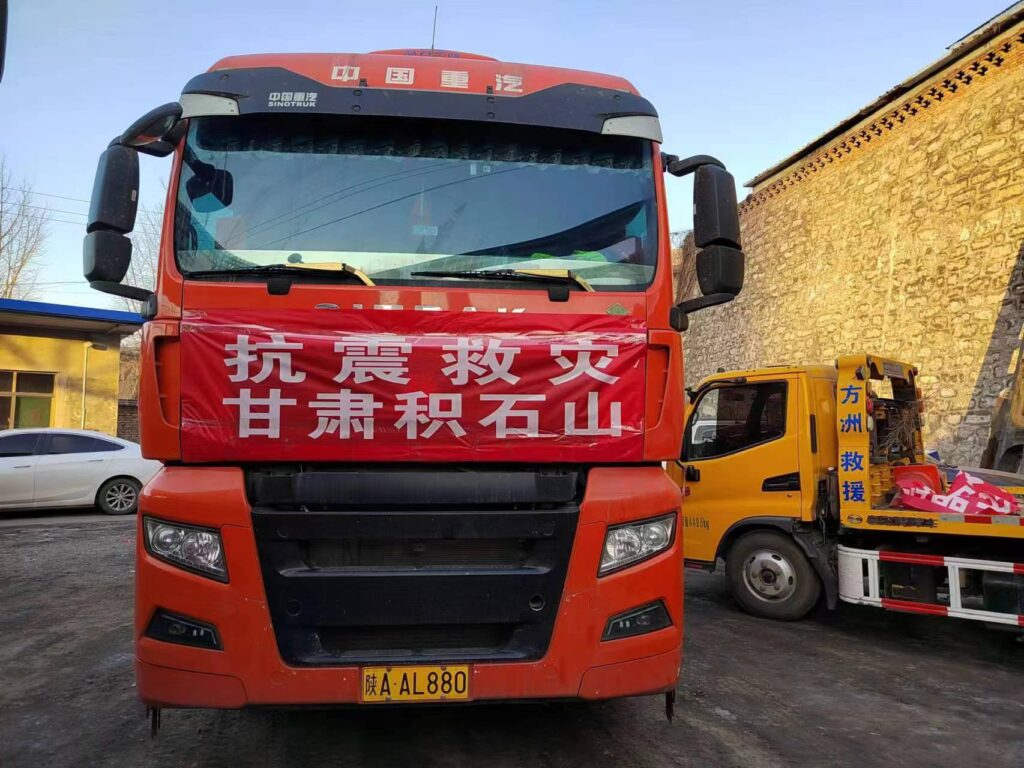 本月21日,满载着爱心应急物资的货车从铜川市出发,向临夏州积石山灾区行进。