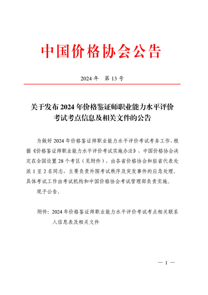 关于发布2024年价格鉴证师职业能力水平评价考试