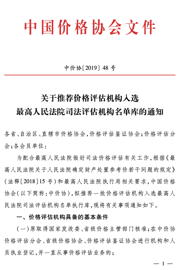 关于推荐价格评估机构入选最高人民法院司法评估机构名单库的通知
