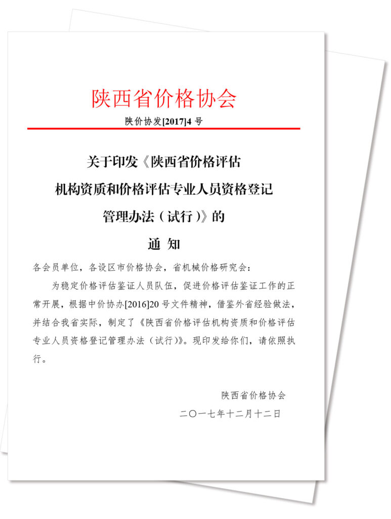 陕西省价格评估机构资质登记公告